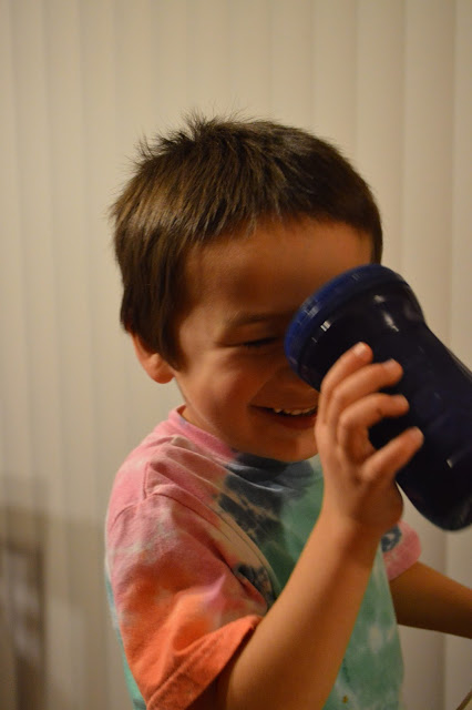 The following series of photos features classic Lucan. Him, wearing his milk cup on his face and thinking he's the best thing since sliced bread (and of course me documenting it. I know that I'm only encouraging his antics).